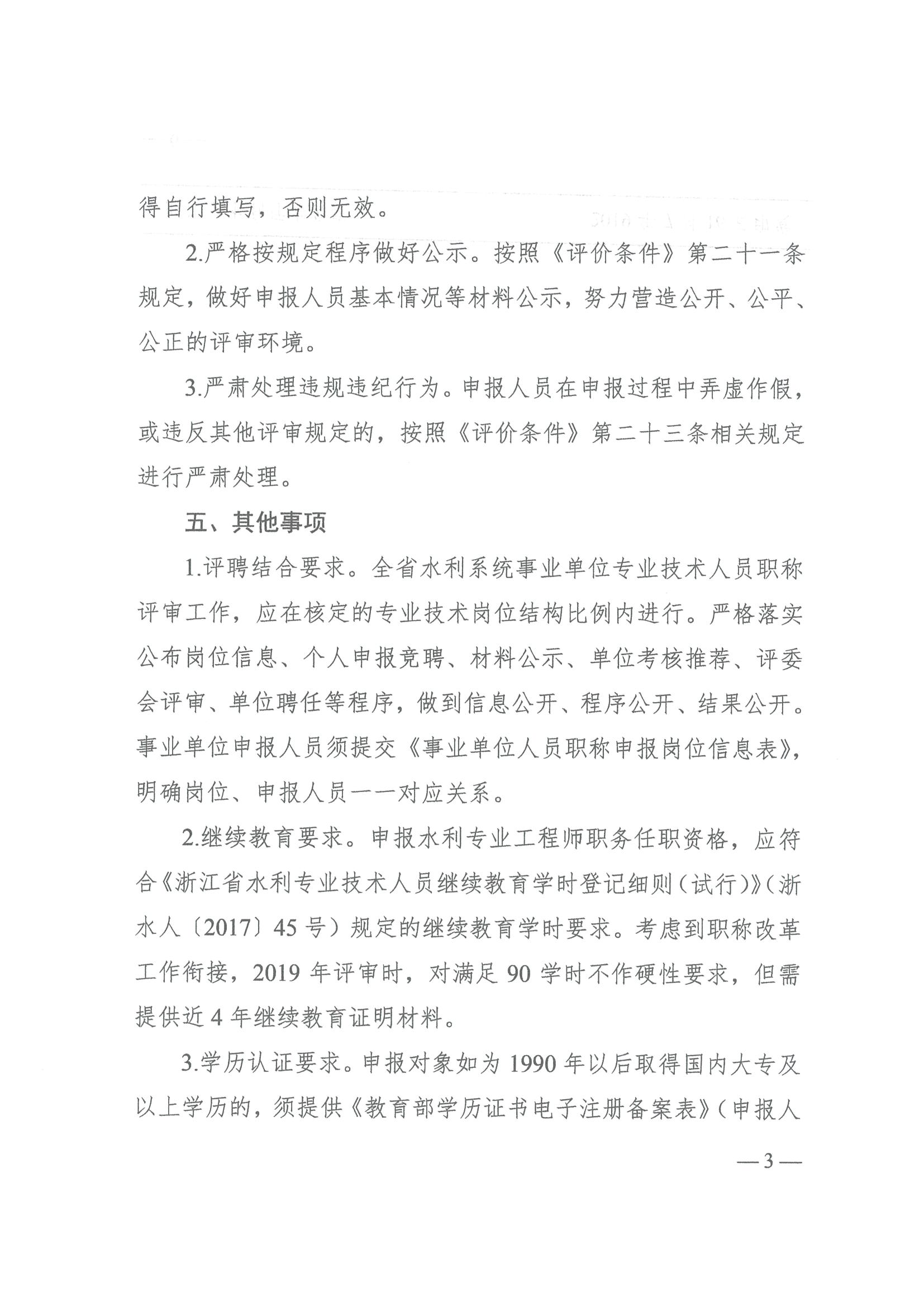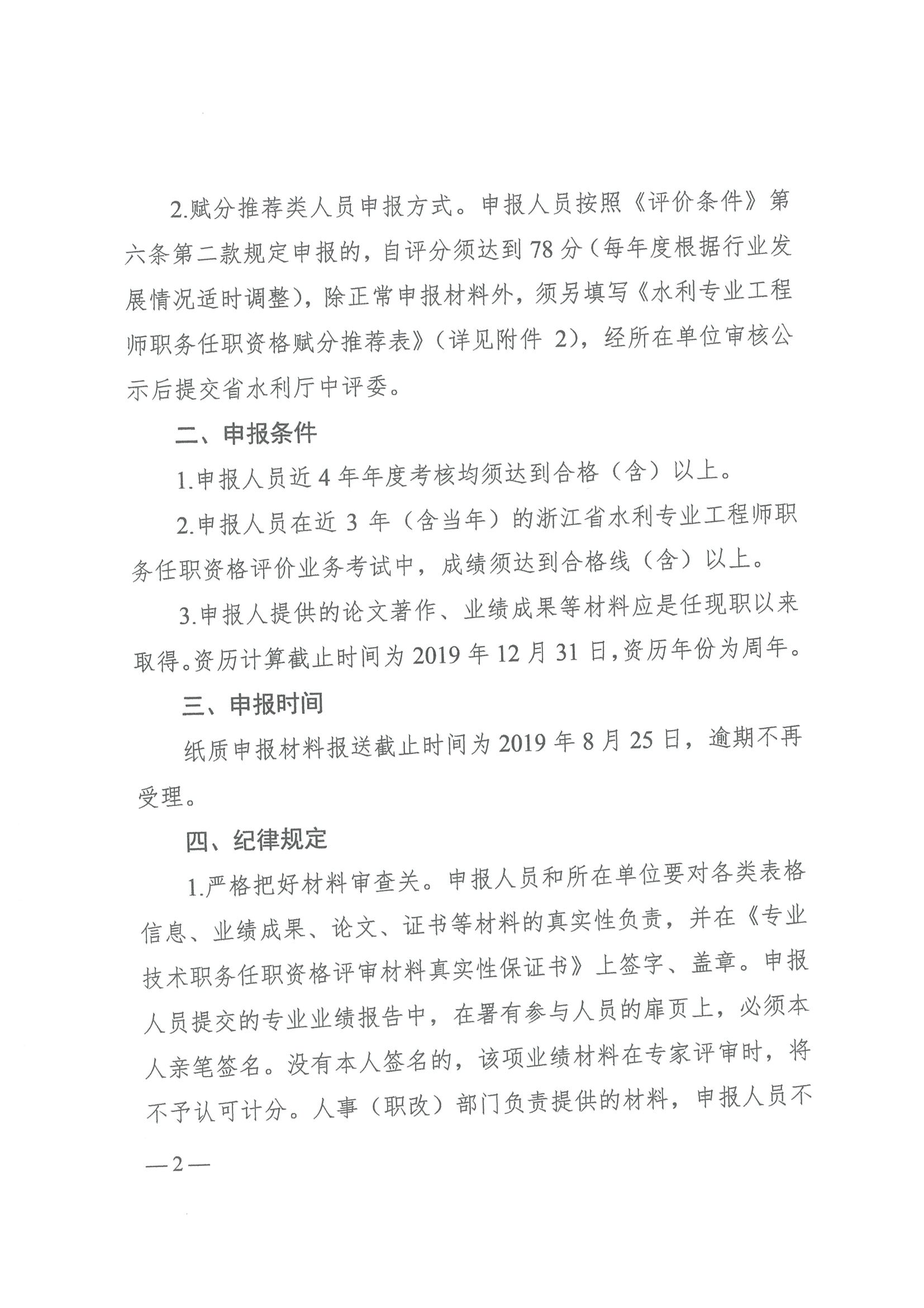 浙江省水利廳辦公室關于開展2019年水利專業工程師職務任職資格評審的通知